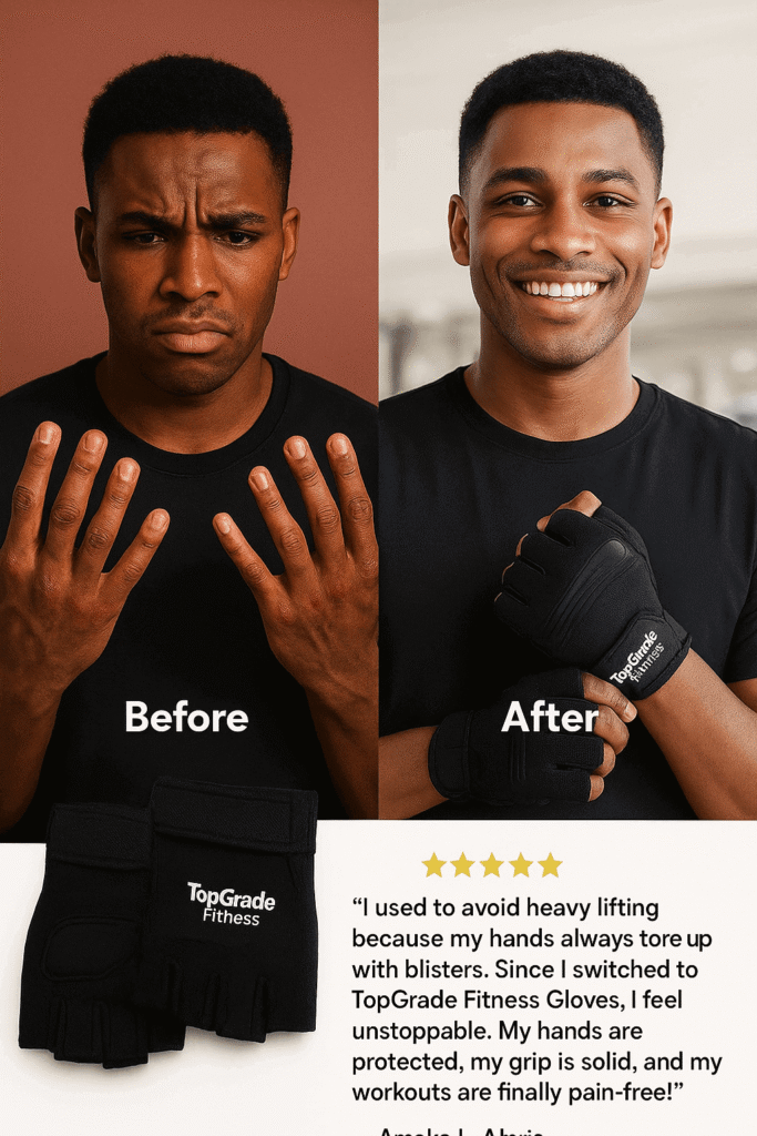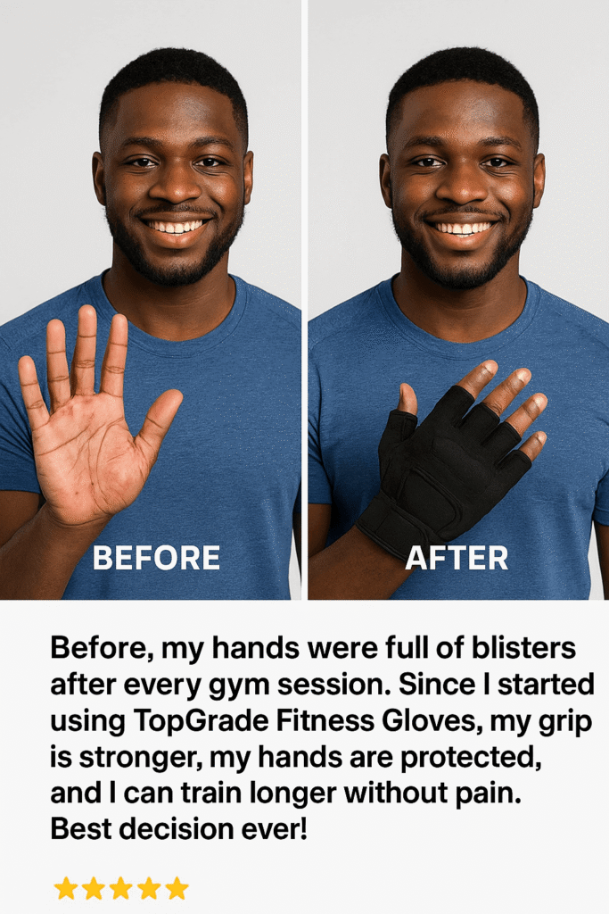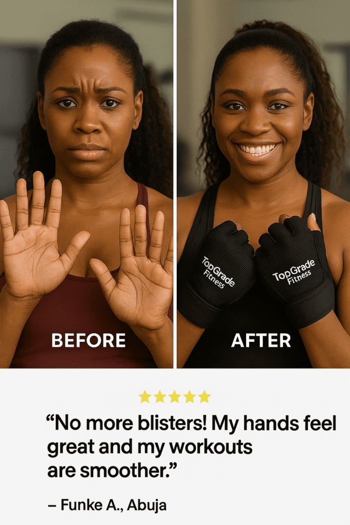 TopGrade Fitness Gloves are the trusted workout gloves that thousands of Nigerians use to stop blisters, hand pain, and weak grip during training.