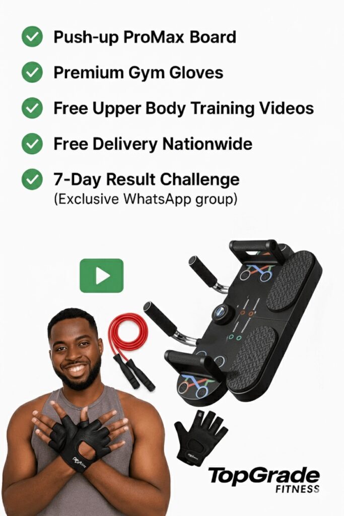 Get FREE Gym Glove + FREE SKIP ROPE + FREE Video Training Program + FREE Health Ebook with every push up pro max order.